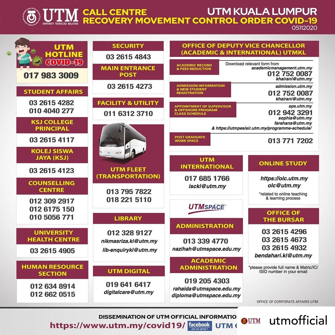 800 am 330 pm MON THUR. Jawatan Kosong Kerajaan dan Swasta 2016 menampilkan Jawatan Kosong Universiti Teknologi Malaysia Jun 2016. Universiti Teknologi Malaysia 81310 UTM Johor Bahru Johor Darul Takzim Malaysia.