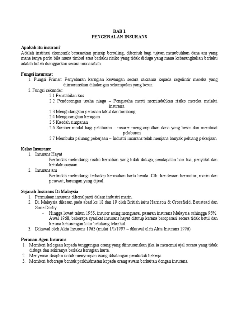 Compare Travel Insurance Policies Now. 46 Biro Perantaraan Insurans 47 Lain-lain Persatuan 48 Perkhidmatan Pasaran 49 Institusi Pendidikan Insurans Soalan BAB 7 - UNDANG-UNDANG AGENSI Pandangan Menyeluruh. Course Title LAW MISC.